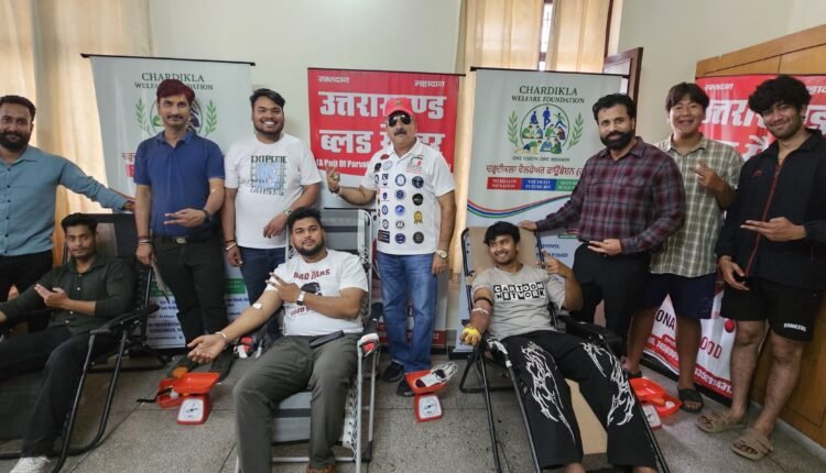 देहरादून। चारदीकला वेलफेयर फाउंडेशन ने उत्तराखंड ब्लड सेंटर के साथ मिलकर वसंत विहार, फेस एक, देहरादून में एक ब्लड डोनेशन कैंप लगाया। इस ब्लड डोनेशन कैंप में 50 से ज़्यादा यूनिट जमा हुए। कैप्टन डॉ. सुरेश कुमार सैनी भी कैंप में मौजूद थे और उन्हें इस मौके पर भारत में सबसे ज़्यादा ब्लड डोनेशन करके जानें बचाने के लिए चारदीकला वेलफेयर फाउंडेशन ने ’ग्लोबल ह्यूमैनिटेरियन लाइफ सेवर अवॉर्ड’ से सम्मानित किया। कैप्टन डॉ. सुरेश कुमार सैनी चार बार पद्मश्री अवॉर्ड के लिए नॉमिनी रहे हैं और उनका नाम 254 से ज़्यादा बार ब्लड डोनेट करने के लिए 50 से ज़्यादा नेशनल और इंटरनेशनल बुक ऑफ़ रिकॉर्ड्स में दर्ज है, जो देश में सबसे ज़्यादा है।