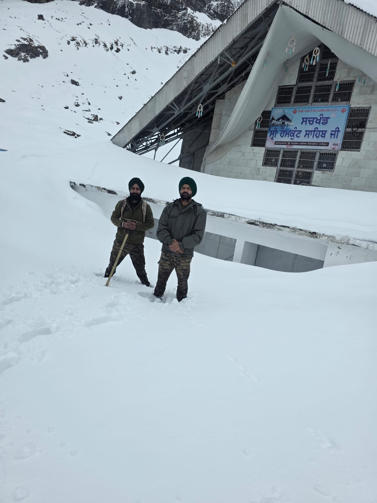 देहरादून। भारतीय सेना के जवानों और गुरुद्वारा श्री हेमकुंट साहिब मैनेजमेंट ट्रस्ट के सेवादारों ने संयुक्त रूप से गोविंदघाट से श्री हेमकुंट साहिब तक ट्रेक रूट का निरीक्षण किया। निरीक्षण के दौरान पाया गया कि श्री हेमकुंट साहिब में लगभग पाँच से छह फीट तक बर्फ जमी हुई है। मार्ग में अलककोटी ग्लेशियर पॉइंट पर भी काफी मात्रा में बर्फ मौजूद है।
