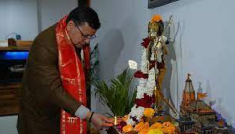 प्राण प्रतिष्ठा की पूर्व संध्या पर देहरादून के परेड मैदान में मुख्यमंत्री की उपस्थिति में ही सवा लाख से अधिक दीये रोशन किए गए। प्राण प्रतिष्ठा के दिन तो मुख्यमंत्री सुबह से लेकर देर शाम तक सक्रिय रहे। सुबह उन्होंने मुख्यमंत्री आवास में रामचरित मानस की चौपाइयों का पाठ किया। फिर गोमाता की सेवा में समय बिताया।
